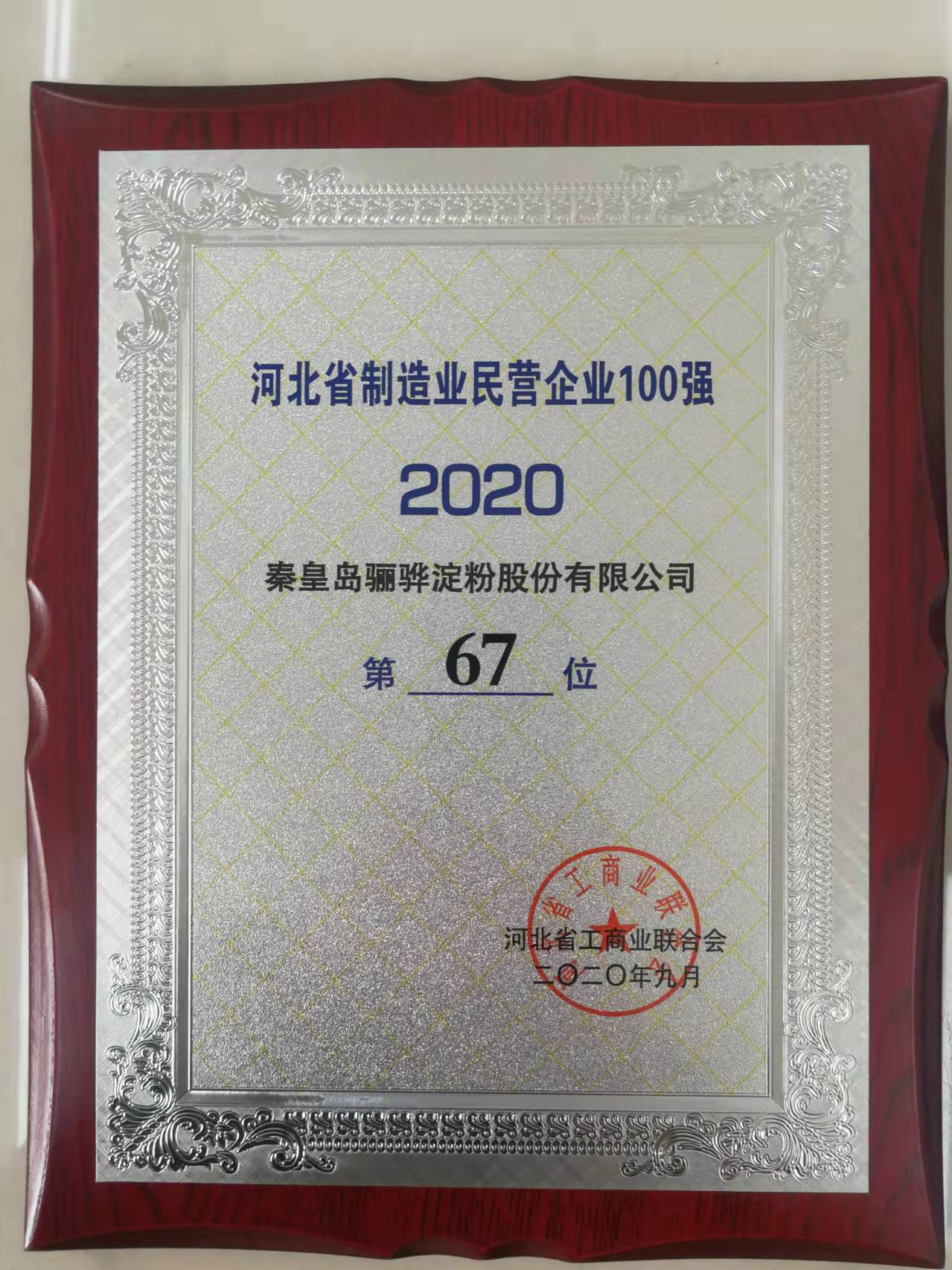 河北省制造業民營企業100強第67位